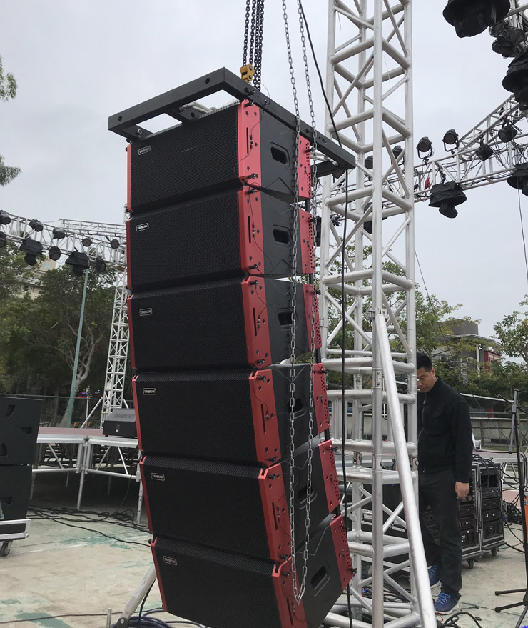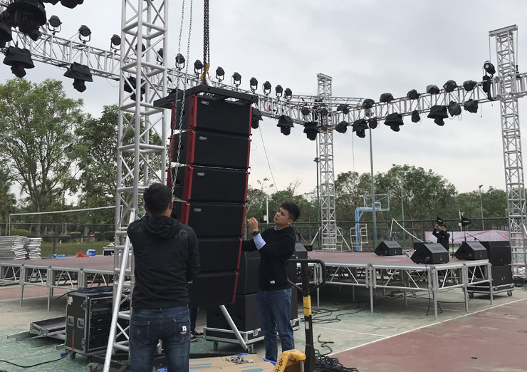 ELA系列线阵音响系统灵敏度高、失真度低,利用合理的声学构造并结合号角的高指向性设计,属“线性声源”,声压随距离增加一倍仅衰减3dB,由此可见更适合听众数量较多、面积较大的扩声场合使用。搭配低频力度和震撼感强、下潜深的EKS-182SUB超低音音响和穿透力强、高频平滑ELV-121M舞台返送监听音箱,加上利于人声歌唱的频响宽度的EKA系列功放,向观众展示选手们的美妙歌声。