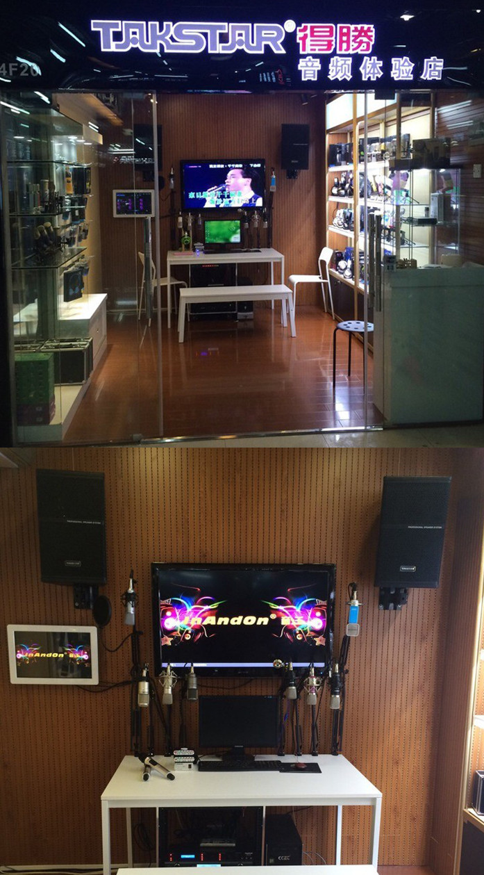 得胜深圳网络K歌音频体验店地处深圳市福田区华强北路万商电器城四楼4F20号,是集产品销售(sale)、解决方案(Solution)、零配件(Sparepart)、售后服务(Service)、信息反馈(Survey)于一体的得胜形象体验店,致力于为广大音频爱好者提供优质上乘的网络K歌音频体验,完善周到的选购和售后个性化服务,竭诚欢迎广大新老客户到店体验,咨询。