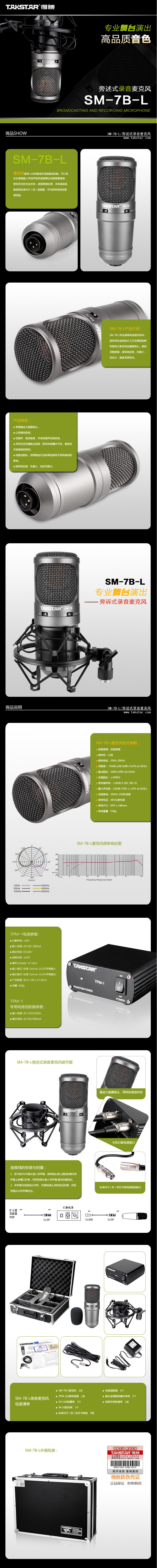 • 换能原理: 压差原理 • 指向性: 心型 • 频率响应: 20Hz-20kHz • 灵敏度: -35dB±2dB (0dB=1V/Pa at 1kHz) • 输出阻抗: 100Ω±30% (at 1kHz) • 负载阻抗: ≥1000Ω • 等效噪声级: ≤20dB A (IEC 581-5) • 最大声压级: 130dB (THD ≤ 1.0% at 1kHz) • 低频衰减: 100Hz 10dB/倍频 • 使用电压: 48V幻像电源 • 单体尺寸: Ø53 x 148mm • 单体重量: 538g