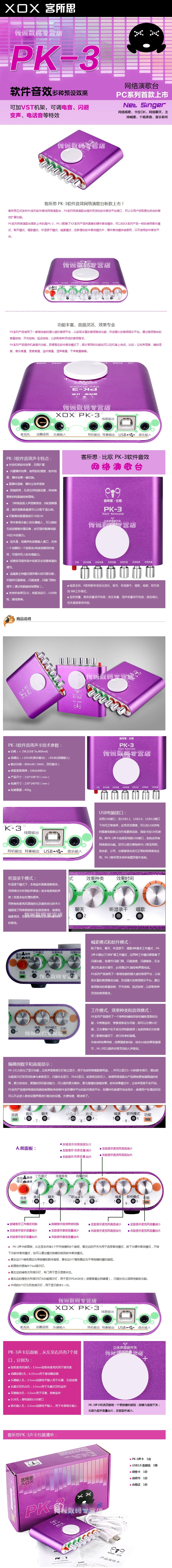 • PK-3 外置声卡 1个 • USB2.0连接线 1条