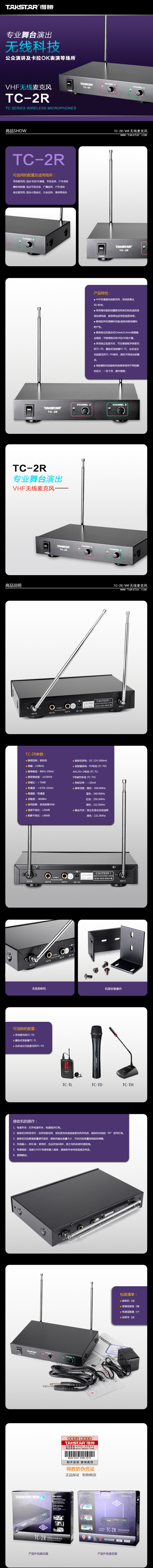 • TC-2R VHF无线麦克风接收机 1台 • 包装盒 1个 |