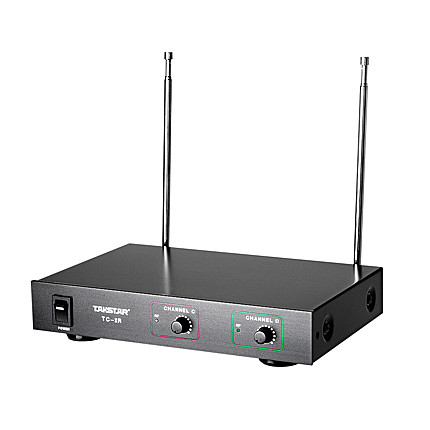 • 静音控制: 锁杂讯 • 频偏: ±18kHz • 频率响应: 80Hz-15kHz • 频率稳定度: ±0.005% • 信噪比: >70dB • 失真度: <0.5% (1kHz) • 频道数: 双通道 • 灵敏度: -80dBm • 使用距离: 有效距离50米 • 谐波干扰比: ≥50dB • 假象干扰比: ≥80dB • 接收机供电: DC 12V-300mA • 发射器供电: 9V电池 (TC-TD) AA1.5V×2电池 (TC-TL) 5号碱性电池 (TC-TH) • 发射功率: <10mA • 频率范围: 橙色: 268.9MHz 蓝色: 240.9MHz 红色: 250.3MHz 绿色: 221.3MHz • 输出方式: 独立及混合自动选择
