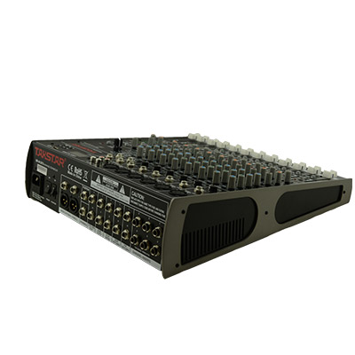 • 6个XLR和TRS平衡输入接口 • 立体声TRS平衡接口输入 • 增益控制盒+48V幻象电源 • 单通道3段EQ,立体声4段EQ • 2个辅助输送:辅助输送AUX1配有PRE/POST开关,用来切换不受推子控制或受推子控制 辅助输送AUX2受推子控制,可监听DSP效果 • 每个输入通道都有静音开关,监听开关及相应的LED灯 • 通道配有SUB1~2和MAIN L-R分配开关 • CD/Tape IN 可以配送主输出或监听输出 • 监听有衰减前衰减后,两种不同方式的控制信号路径 • 平衡XLR和TRS输出 • 24字节的内部效果,配有100个预设,效果静音和峰值LED灯
