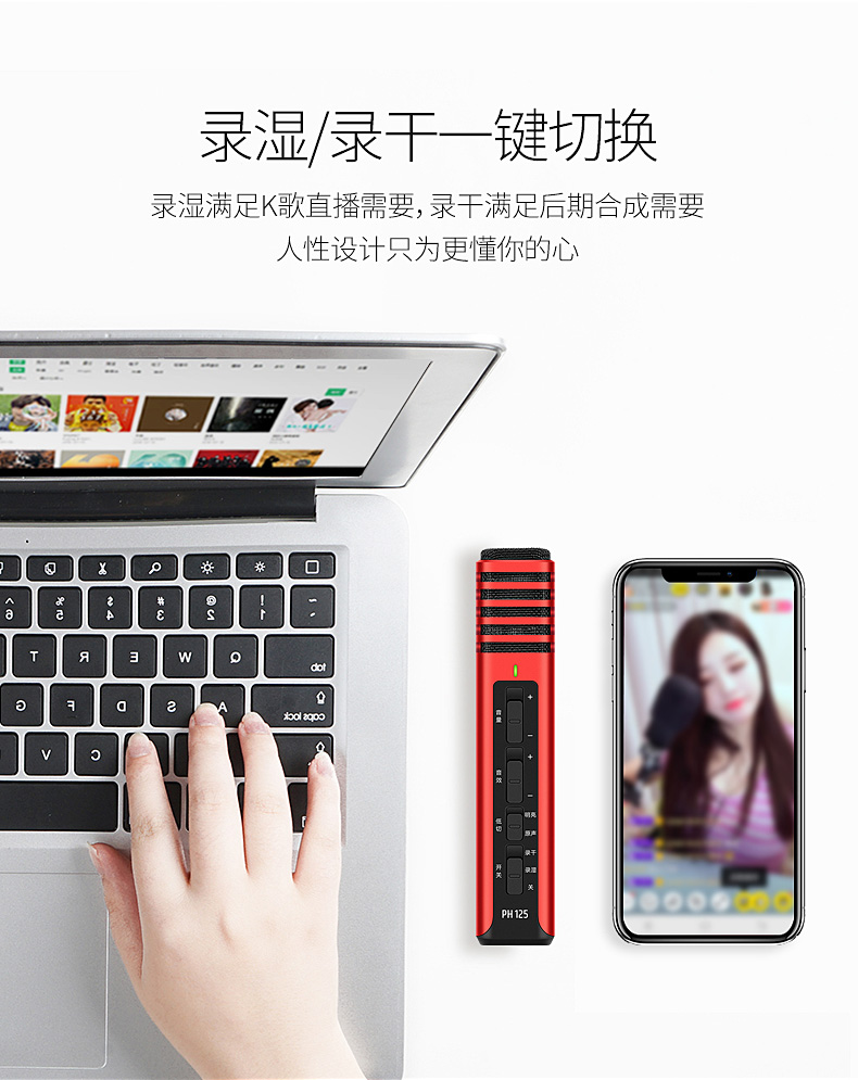 PH 125 电容式手机K歌直播麦克风