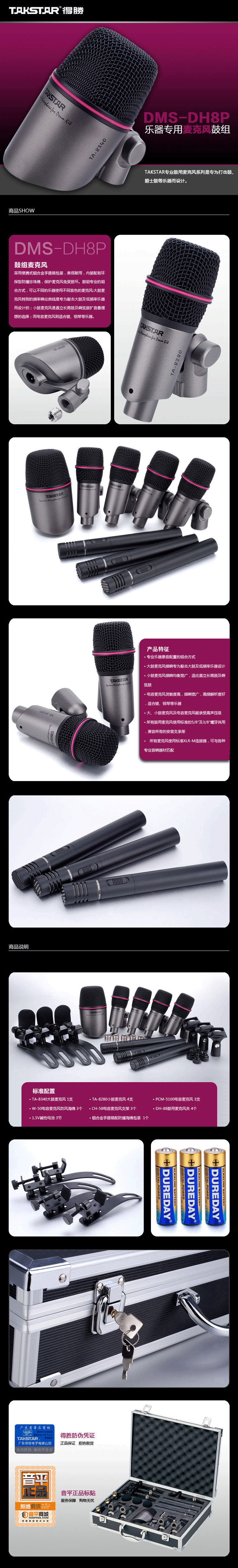 • TA-8340大鼓麦克风 1个 • TA-8280小鼓麦克风 4个 • PCM-5100电容麦克风 3个 • W-50电容麦克风防风海绵 3个 • CH-58电容麦克风支架 3个 • DH-88鼓用麦克风夹 4个 • 1.5V碱性电池 3个 • 铝合金手提箱配防撞海绵包装 1个 |