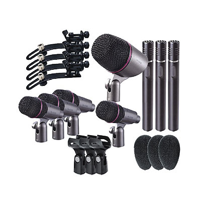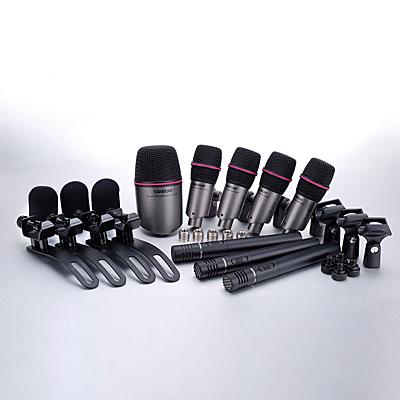 • 专业乐器录音配置的组合方式 • 大鼓麦克风频响专为敲击大鼓及低频率乐器设计 • 小鼓麦克风频响均衡宽广,适应直立长筒鼓及响弦鼓 • 电容麦克风灵敏度高,频响宽广,高频解析度好,适合钹、钢琴等乐器 • 大、小鼓麦克风及电容麦克风能承受高声压级 • 所有鼓用麦克风使用标准的5/8″及3/8″螺牙共用,兼容所有的安装支承架 • 所有麦克风使用标准XLR-M连接器,可与各种专业音响器材匹配